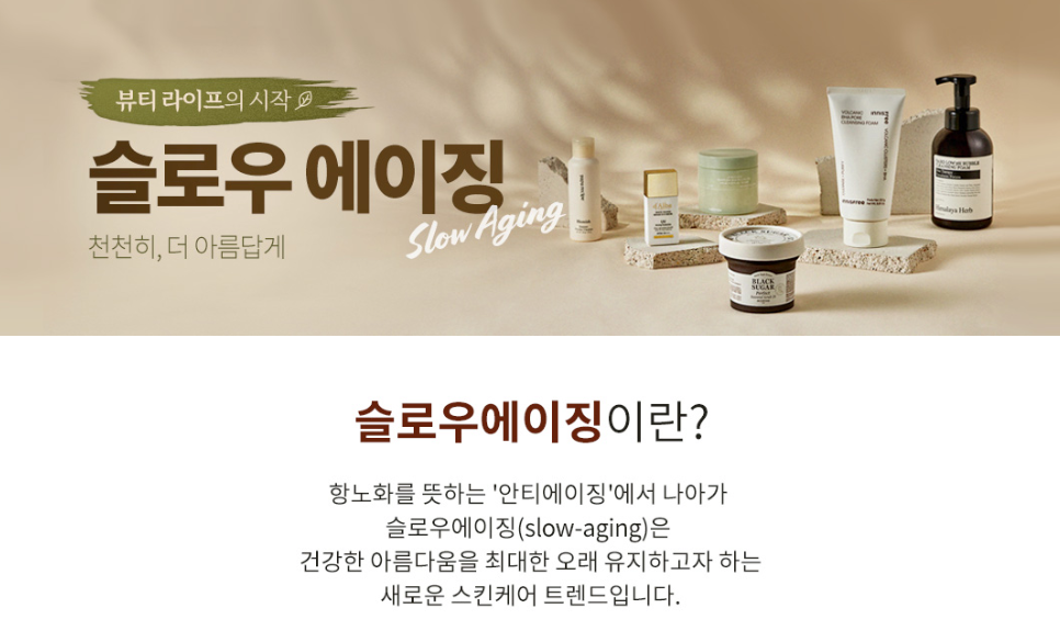우리는 모두 자연스럽게 나이가 들어갑니다. 하지만 어떻게 나이 들 것인지는 우리의 선택에 달려있죠! 과거에는 주름을 없애고 시간을 되돌리는 '안티에이징'이 대세였다면, 요즘은 ‘천천히, 건강하게 나이 들기’를 의미하는 '슬로우 에이징'이 새로운 뷰티 트렌드로 주목받고 있습니다. 젊음만을 맹목적으로 쫓기보다는, 피부 본연의 건강과 아름다움을 지켜나가려는 움직임인데요. 이 '슬로우 에이징'에 대해 자세히 알아볼까요?